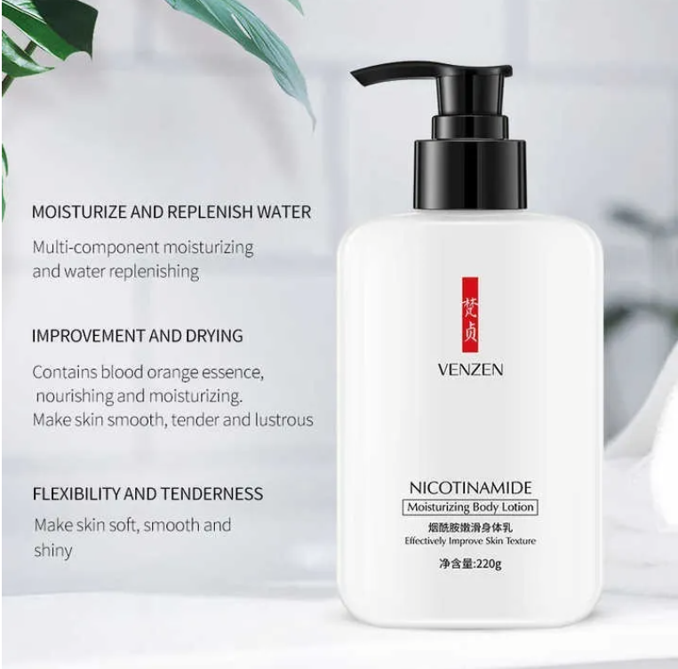 Loción corporal con nicotinamida, Ayuda a eliminar granitos en brazos y piernas - con 50% de descuento